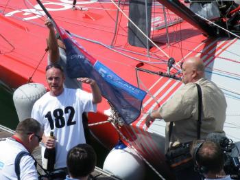 Le samedi après-midi, de retour au bassin, nous avons pu rencontrer Brad Van Liew, le vainqueur, et Chris Stanmore-Major qui venait d'accoster au ponton, après avoir, lui aussi, attendu quelque part au large ou ailleurs.