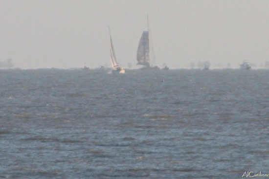 Où se cachent les bateaux quand ils ne rentrent pas directement au port ? On ne sait pas. Une fois que la voile est affalée, le bateau disparaît. Y a-t-il une cachette dans le port de Saint-Denis d'Oléron pour les bateaux qui attendent que la marée soit suffisamment haute pour atteindre le bassin des chalutiers dans le port de La Rochelle ? Le même phénomène s'est reproduit pour tous les bateaux : on aperçoit leur silhouette sous voiles puis plus rien ! L'Américain a attendu deux heures du matin pour réapparaître et gagner le ponton réservé au basssin des chalutiers après l'ouverture de la porte. (A cette heure-là le Traversier bicéphale, alias la Cigogne et le Caribou, était parti se coucher pour mieux se relever le lendemain avec non seulement la suite des arrivées de la Velux mais aussi un meeting aérien près de la maison !
