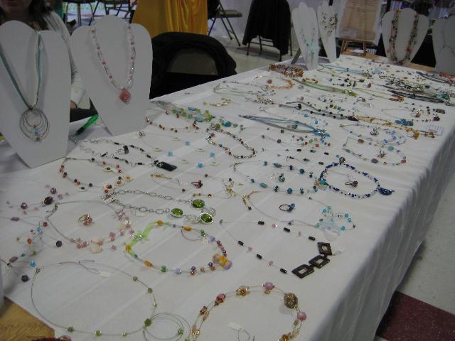 Une table remplie de colliers ; à vous de faire votre choix, mesdames.