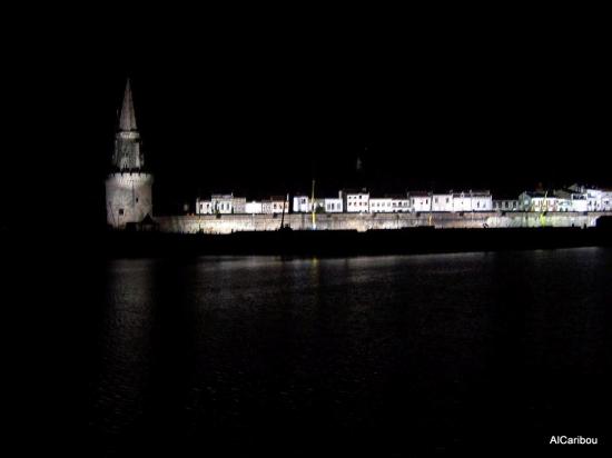 Une autre vedette, ce soir à La Rochelle : la chaloupe de l'Hermione, la frégate de Lafayette actuellement en renaissance dans la double forme de radoub de Rochefort. L'Hermione nouvelle devrait voir le jour en 2012 et refera le voyage vers l'Amérique. Pour l'instant, ses deux chaloupes l'attendent, et la plus grande est venue jouer dans la cour des grands à La Rochelle. Les rameurs de service ont encore quelques difficultés à tenir de rythme, mais l'ambiance y est.